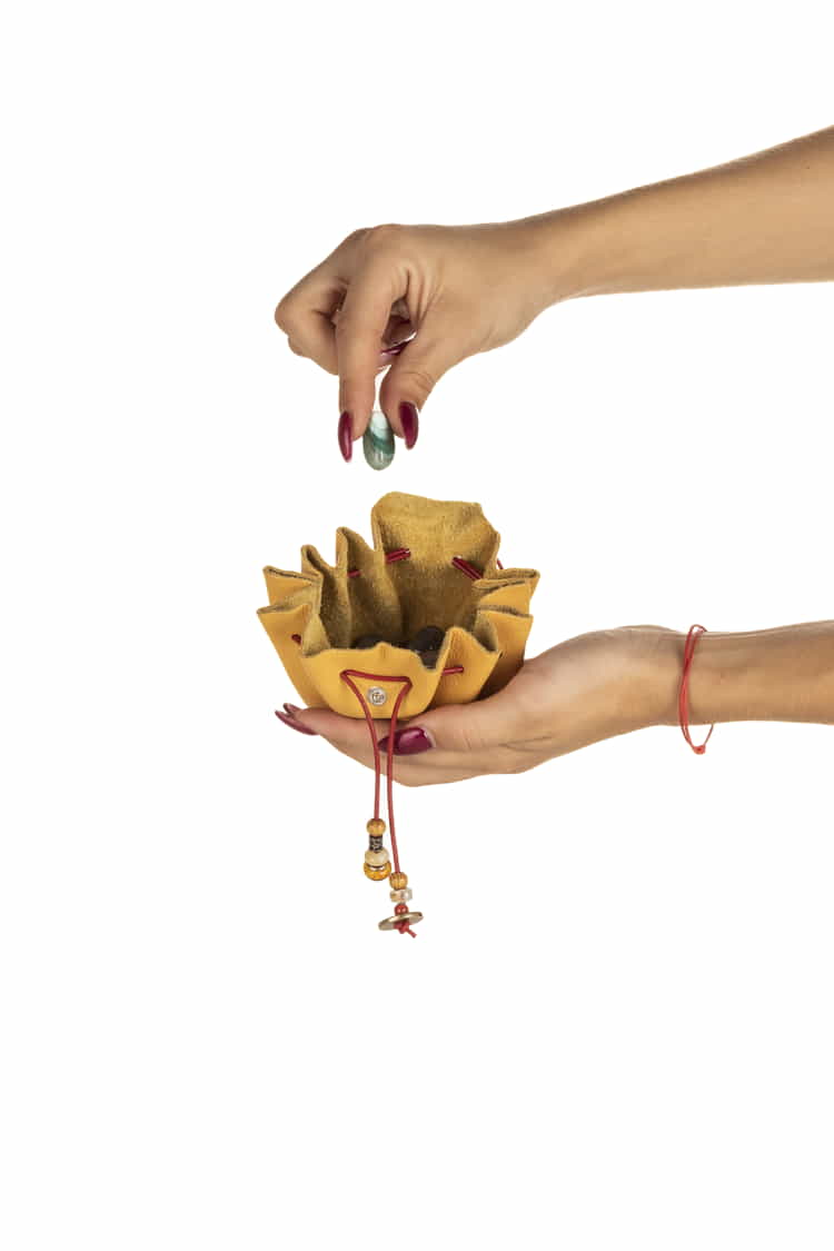 Hecho a mano con piel de becerro de la máxima calidad y un diseño original para portar toda clase de objetos pequeños o joyas, así como monedas con un aire medieval y una decoración colorida acorde con tu gusto. Los materiales en la decoración son de alta calidad como perlas de rio o piedras semipreciosas, también incluye un detalle original y exclusivo para tensar mejor el cierre con el cordón, hemos dispuesto una moneda antigua, su diseño original es con un pequeño agujero central, adaptándose perfectamente con un toque distintivo.