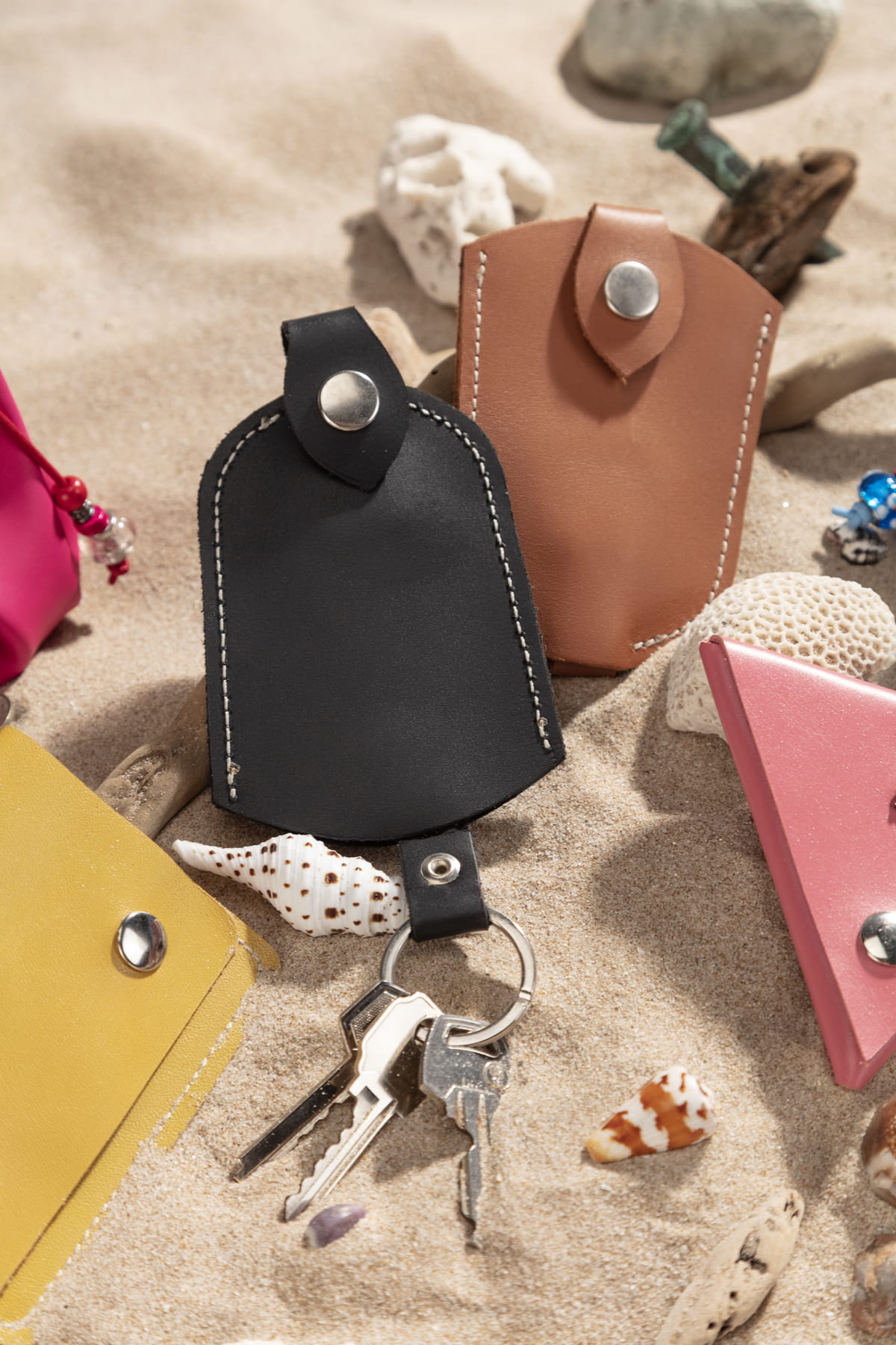 Llavero de piel hecho a mano en cuero de alta calidad, con un diseño práctico para guardar sus llaves de forma elegante y segura.
